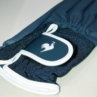 女性用ネイルフリータイプの両手用グローブ。指先はオープンタイプで女性の指先の爪にストレスを与えない仕様。全天候型で手甲部分はUPF50のストレッチニット素材を採用し、手の平部分にはクラブのグリップにフィットする合成皮革を採用。